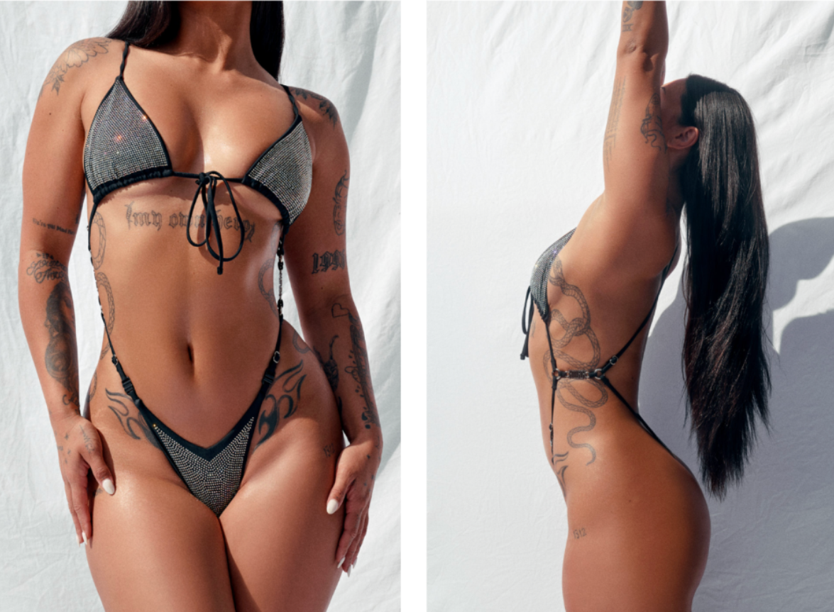 A twist on the classic - cups flipped for extra lift and attitude, tied halter-style behind the neck; back straps crisscrossed low with HOAH logos perfectly sitting at the base