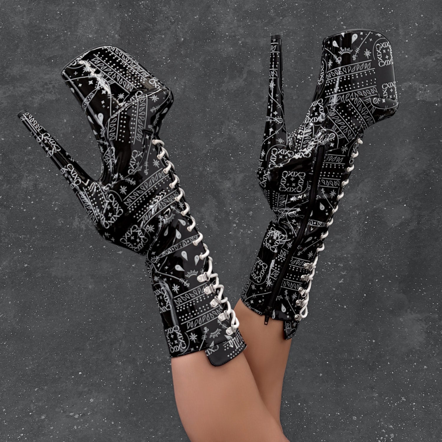 9”s and back lace-ups (excl. thigh highs) run slightly smaller, if unsure size up