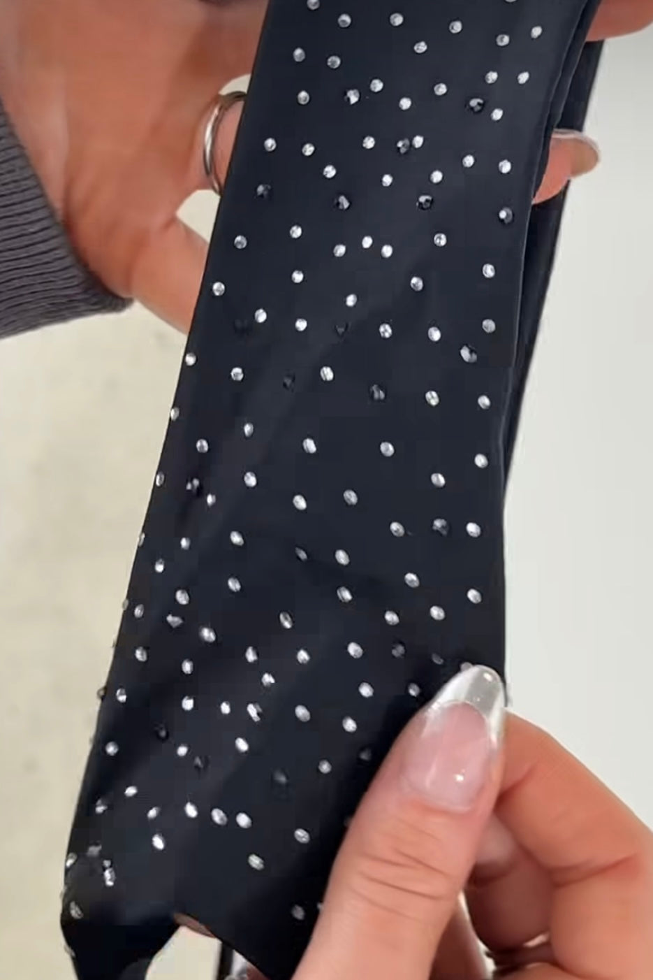Rich midnight black drippin’ with Icy Silver and Jet Black rhinestones ✨