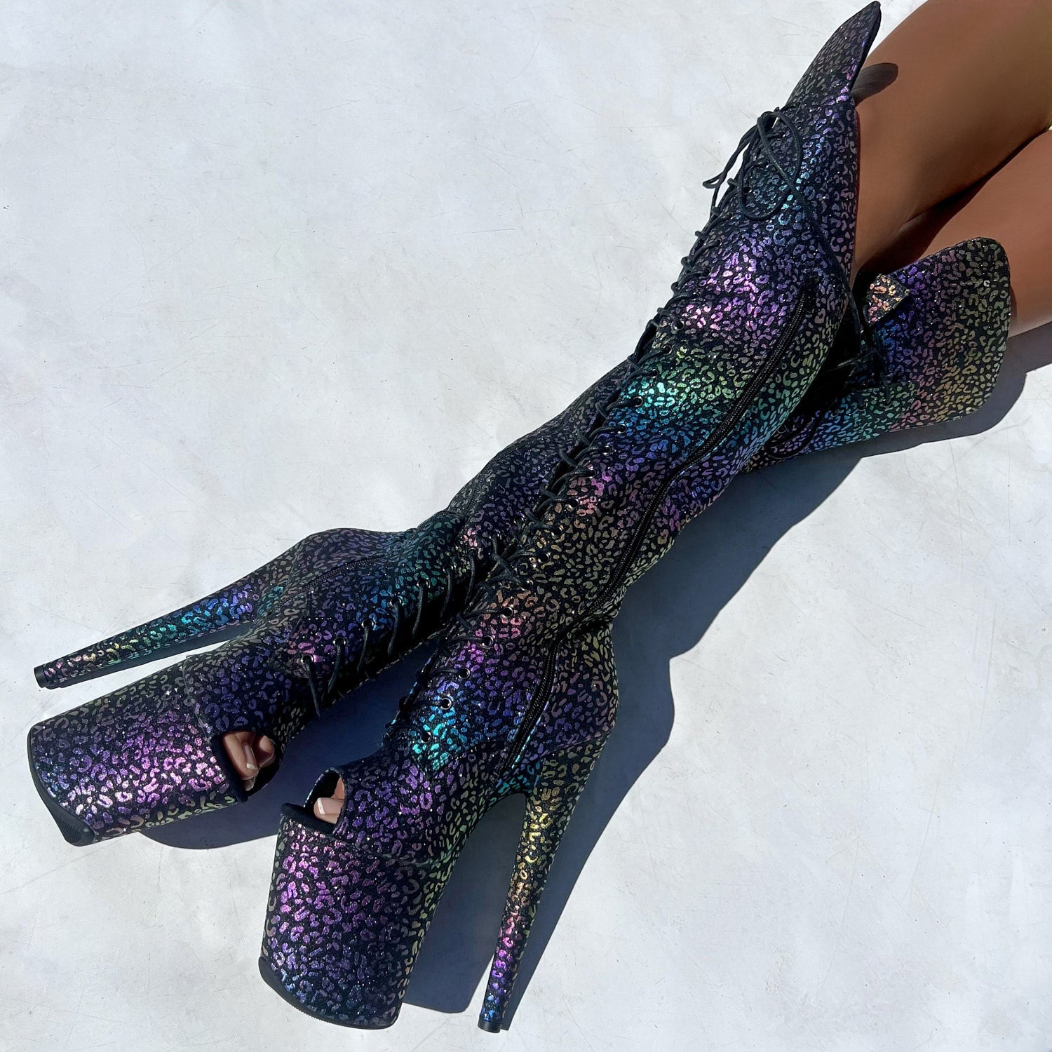 Moonlight Leopard Over Knee Boot Open Toe - 8INCH Sale price $ 235.00 USD