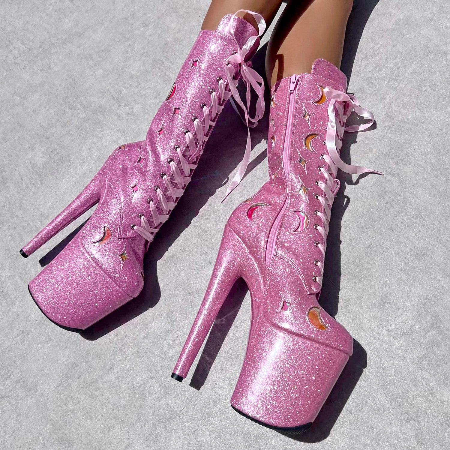 The Glitterati Cosmic Boot - Pink Sparkle - 8INCH Sale price $ 161.10 USD